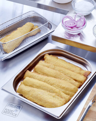ALASKA-SEELACHS-FILET (60%), Wasser, WEIZENMEHL, Rapsöl, Maismehl, Speisesalz, HÜHNEREIPULVER, modifizierte Maisstärke, SENFMEHL, Zucker, Backtriebmittel (Diphosphate, Natriumcarbonate), WEIZENSTÄRKE, Dextrose, Hefe.