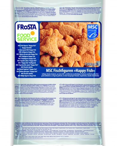 Fantasievolle verschiedene Meeresfiguren à ca. 30 g, geformt aus saftigem, fein zerkleinertem MSC zertifizierten Alaska-Seelachs-Filet, in einer goldenen und knusprigen Panade. Tiefgefroren. Dekorativ, schmackhaft und praktisch grätenfrei, besonders beliebt in Kita und Schule.