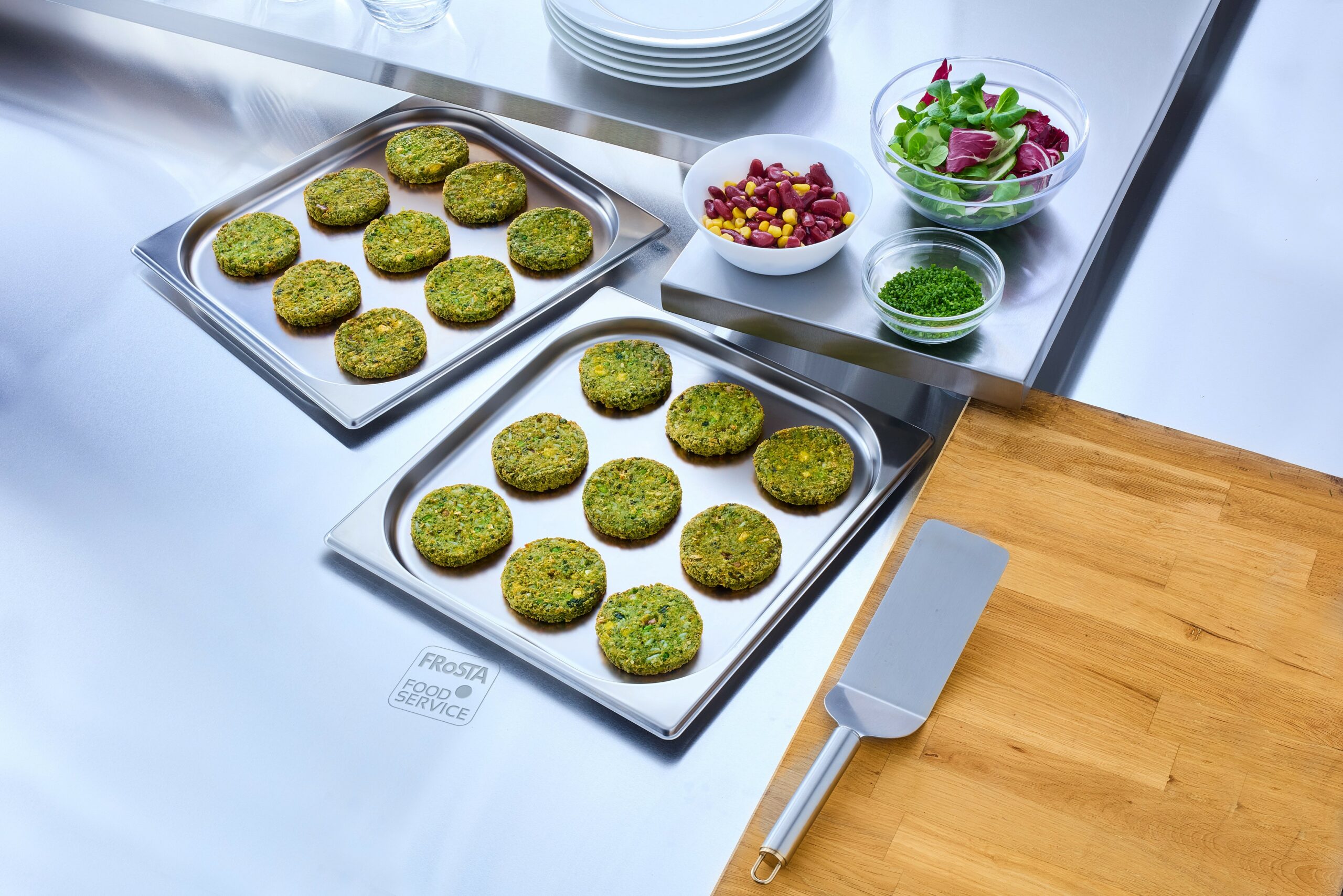 Vegetarisches Gemüse-Patty mit einer würzigen Mischung aus Erbsen, Mais, Champignons und Spinat kombiniert mit gekochtem Reis und Haferflocken, verfeinert mit Edamer-Käse & Crème fraîche sowie ausgewählten Gewürzen. Die saftige Veggie-Frikadelle mit merkbaren Gemüsestücken ist fest in der Konsistenz, vorgebraten & tiefgefroren.