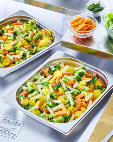gelbe Karotten, Karotten (24 %), Kohlrabi, Broccoli, Wasser, Margarine (pflanzliche Fette (Palm, Kokos), Wasser, Emulgator: Mono- und Diglyceride von Speisefettsäuren, Säuerungsmittel: Citronensäure), Speisesalz, Rapsöl, Kartoffelstärke, Zucker, Gewürze (Muskatnuss, Pfeffer, Liebstöckel, Kurkuma, Nelken, Lorbeer), Gemüsepulver (Zwiebeln, Pastinaken), Maltodextrin, Steinpilzpulver, Petersilie.