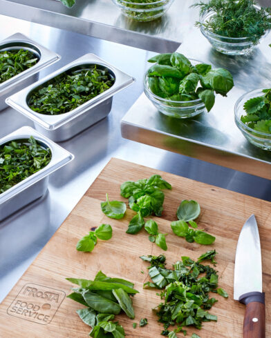 Basilikum, fein gehackt lose streubar und tiefgefroren. Perfekt ideal für die mediterrane Küche und ideal zum Verfeinern von Saucen, Pasta oder Salaten.