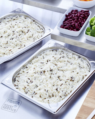 gegarter Reis (Wasser, Reis, Speisesalz) (91%), gegarter Wildreis (Wasser, Wildreis, Speisesalz) (5%), enthält Sonnenblumenöl und/oder Rapsöl, Wasser, Speisesalz, Zucker, Gemüsepulver (Zwiebeln, Pastinaken, Karotten), Maltodextrin, Gewürze (Liebstöckel, Kurkuma, Pfeffer, Nelken, Lorbeer), Steinpilzpulver, Petersilie.