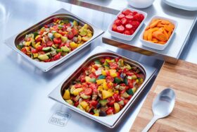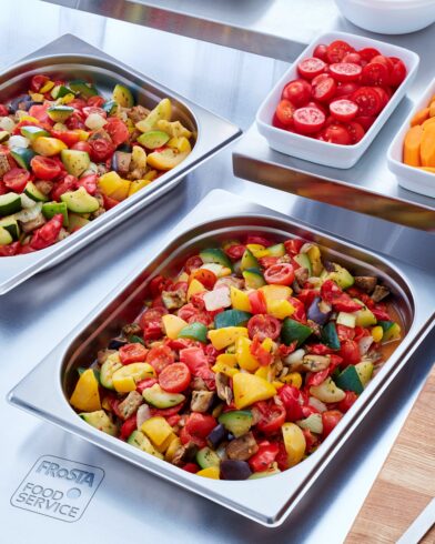 Cherry-Tomaten, gelbe und grüne Zucchini / Zucchetti (CH), gegrillte rote Gemüsepaprika / Peperoni (CH), Zwiebeln, gelbe Gemüsepaprika / Peperoni (CH), gegrillte Auberginen, Wasser, natives Olivenöl extra, Speisesalz, Zucker, Kräuter (Thymian, Rosmarin), Pfeffer.